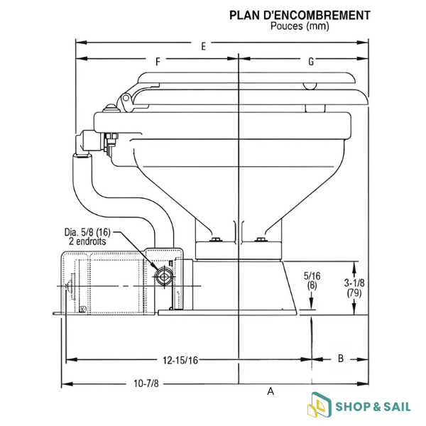 Spécifications techniques des toilettes Jabsco 37010 :