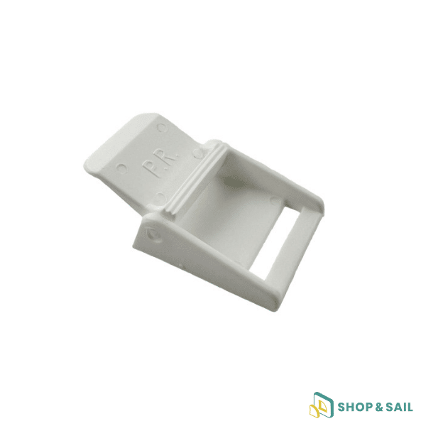 Boucle à came TA FRANCE légère en plastique blanc, idéale pour le réglage et le maintien de sangles. Facile à manipuler, elle assure un bon maintien sans glissement grâce à son système de came efficace. Parfaite pour vos équipements nautiques, sacs, sangles de fixation, taud, bimini.