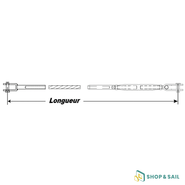 Le câble utilisé est un Monotoron 1X19 D06, assurant une résistance maximale à la traction et à l’usure. Les terminaisons incluses garantissent une fixation solide :