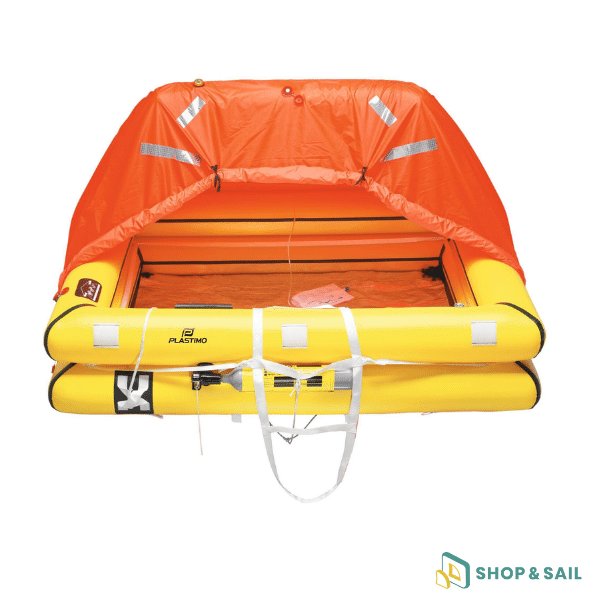 La sécurité des occupants est renforcée par un double fond isolant qui limite les pertes thermiques, ainsi qu’une tente orange fluo équipée d’un arceau gonflable automatique. Les bandes radarisables et rétro-réfléchissantes, associées à une lampe extérieure de 4,3 cd, assurent une visibilité maximale, un atout déterminant lorsque la mer devient difficile et que les secours doivent localiser rapidement l’embarcation.